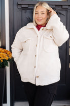 Embrace the cold with the Shrouded in Sherpa Coat, your new go-to for ultimate warmth and effortless style. This isn't just a jacket; it's a cozy statement piece crafted from substantial, heavyweight sherpa fleece designed to lock in heat on the chilliest days. The classic collared neckline and easy button-front closure give it a timeless look, while the dropped shoulder design ensures a modern, relaxed fit for comfortable layering. Practicality meets fashion with dual side seam pockets and secure button flap pockets for storing essentials. Add this essential white sherpa coat to your winter wardrobe for a touch of unmatched comfort and chic insulation.