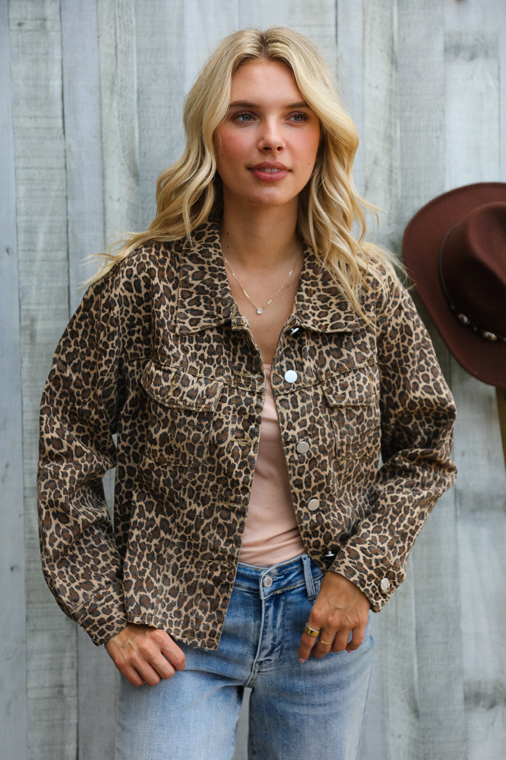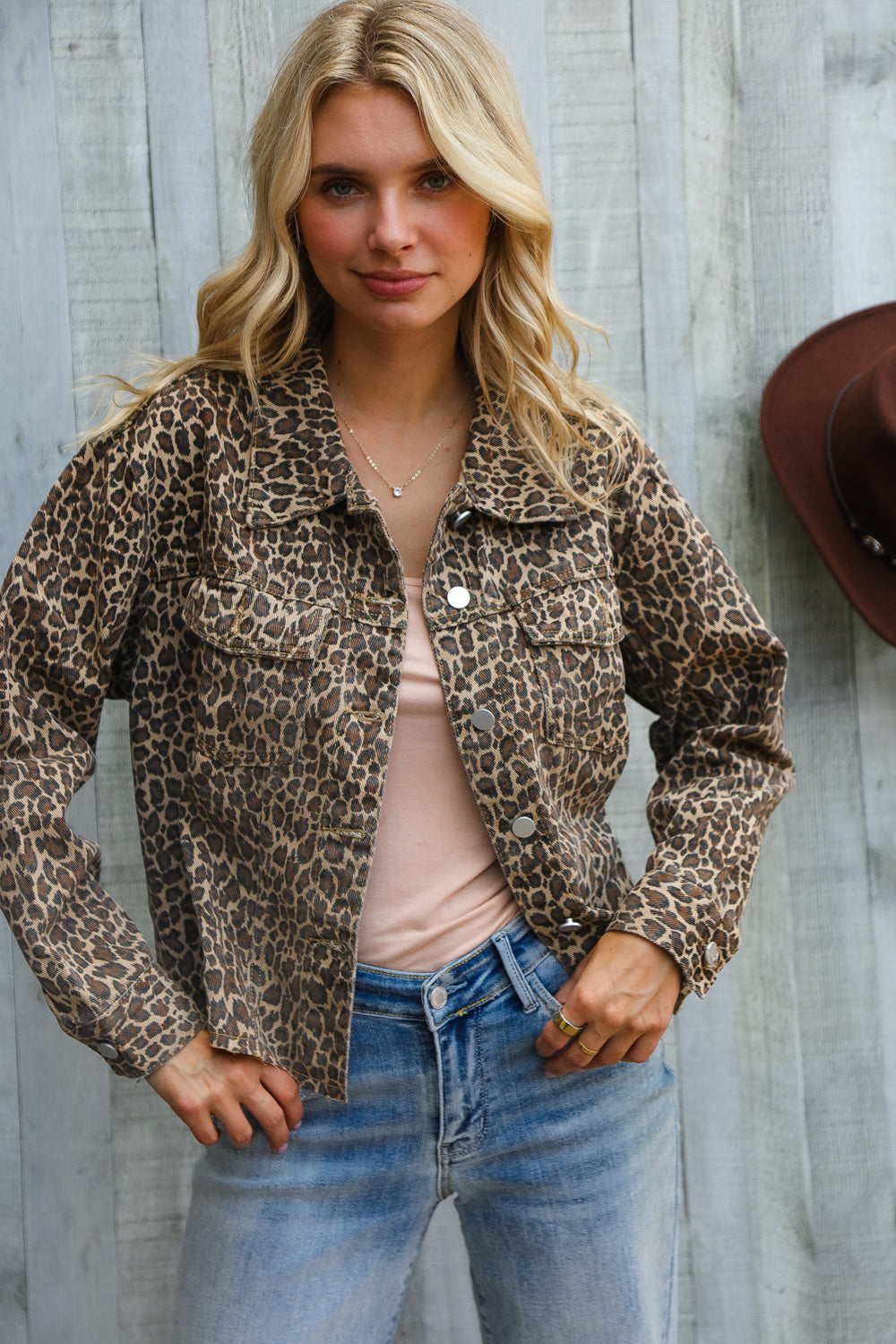 This leopard jacket with a cut edge detail is one of those pieces that just makes you feel a little extra sassy. It’s got a soft, washed, lightweight denim feel with a fit that hits right at the waist. It looks cute with high rise jeans or even over a dress. We love it styled with a cute headband. Toss it on for a night out or even just running to the coffee shop, it is surprisingly versatile.
