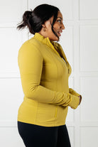 Get active in our Staying Swift Activewear Jacket in Yellow Pear. Made from brushed microfiber, this form-fitting jacket features a mock neckline, functional full front zipper, thumb holes, long sleeves, and a back vent for added airflow. Plus, keep your essentials safe with functional zipper pockets. Perfect for the girl on-the-go!