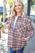 Be You Best Taupe Plaid Quilt Lined Button Down Shacket