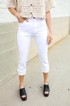 Judy Blue White Midrise Cuffed Hem Skinny Fit Capris