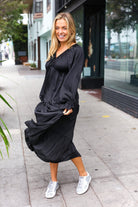 You will love this satin elastic V neck flutter sleeve maxi featuring a flattering tiered ruffle hemline. Stylish and versatile, this elegant maxi is perfect for all your holiday festivities.