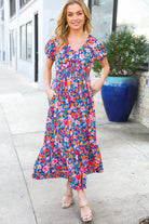 Perfect for Easter, bridal showers or date night, this blue, teal and pink floral smocked waist dress is stunning. With raglan puff sleeves, a banded V neck and side pockets, be prepared to catch glances with this maxi dress!