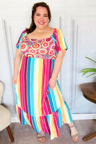 Feeling Bold Fuchsia & Teal Striped Medallion Crochet Print Dress