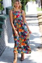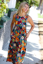 End summer with casual elegance with this flat floral sleeveless tank top maxi dress designed with a round scoop neck, an elastic waist and side pockets. With a silky, flattering drape, layer with a denim jacket or wear solo for a striking look.