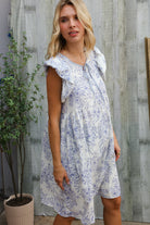 Vintage Vibes Dusty Blue Folded Ruffle Short Sleeve Babydoll Dress