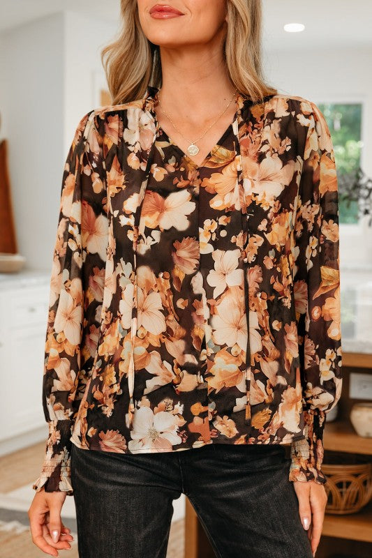 Refresh your wardrobe with this effortlessly chic floral blouse featuring elegant puff sleeves and a flexible tie-neck. Its breezy, loose fit offers superior comfort while transitioning perfectly from the office to a night out. Fall in love with feminine shirred details and a timeless boho vibe.