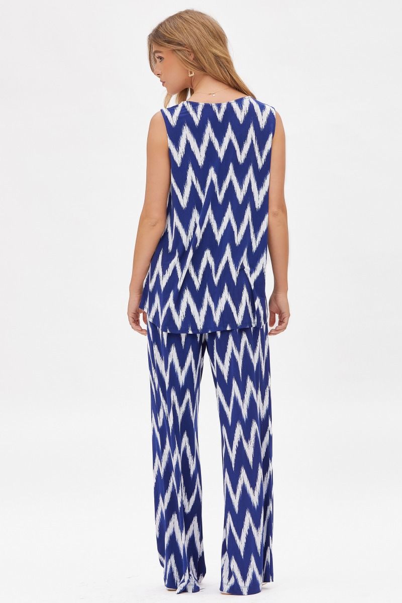 Gorgeous and breezy, gracing your body with a fit that's both flattering and relaxing, this wrinkle-free printed set is the perfect solution for you this spring/summer! We love the sleeveless blouse that prioritizes both comfort and style, which can easily transition from travel to leisure. The unique print in trendy hues features a loose-fit and an elastic waistline that will keep you cool for the warmer days ahead!