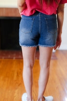 Show your patriotic spirit with these high-rise denim American flag designed shorts with a frayed hem, plenty of stretch and a one button zippered enclosure. Pair with sandals, or sneakers this summer season!