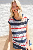 Feeling Festive Red White & Blue Striped Crochet Sweater Top