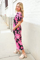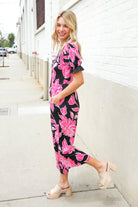 Spring Vibes Black Floral Print Ruffle Sleeve Wide Leg Jumpsuit