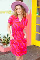 Red & Fuchsia Zebra Surplice V Neck Pocketed Dress