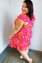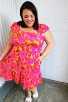 Fuchsia & Orange Tropical Floral Square Neck Dress