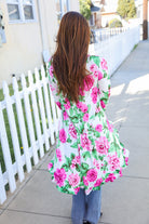 Be Bold Ivory Big Floral Hi-Lo Ruffle Hem Knit Top