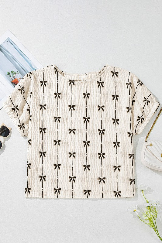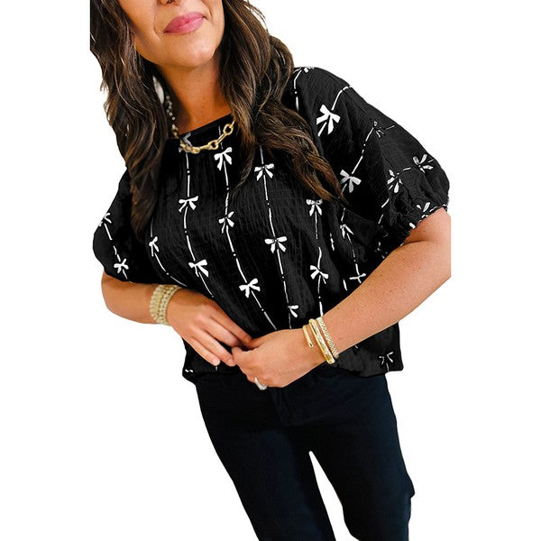 Step out in classic style. This adorable bow print adds a touch of charm. Soft and breathable fabric for all-day comfort. Trendy puff sleeves design adds extra graceful flair.