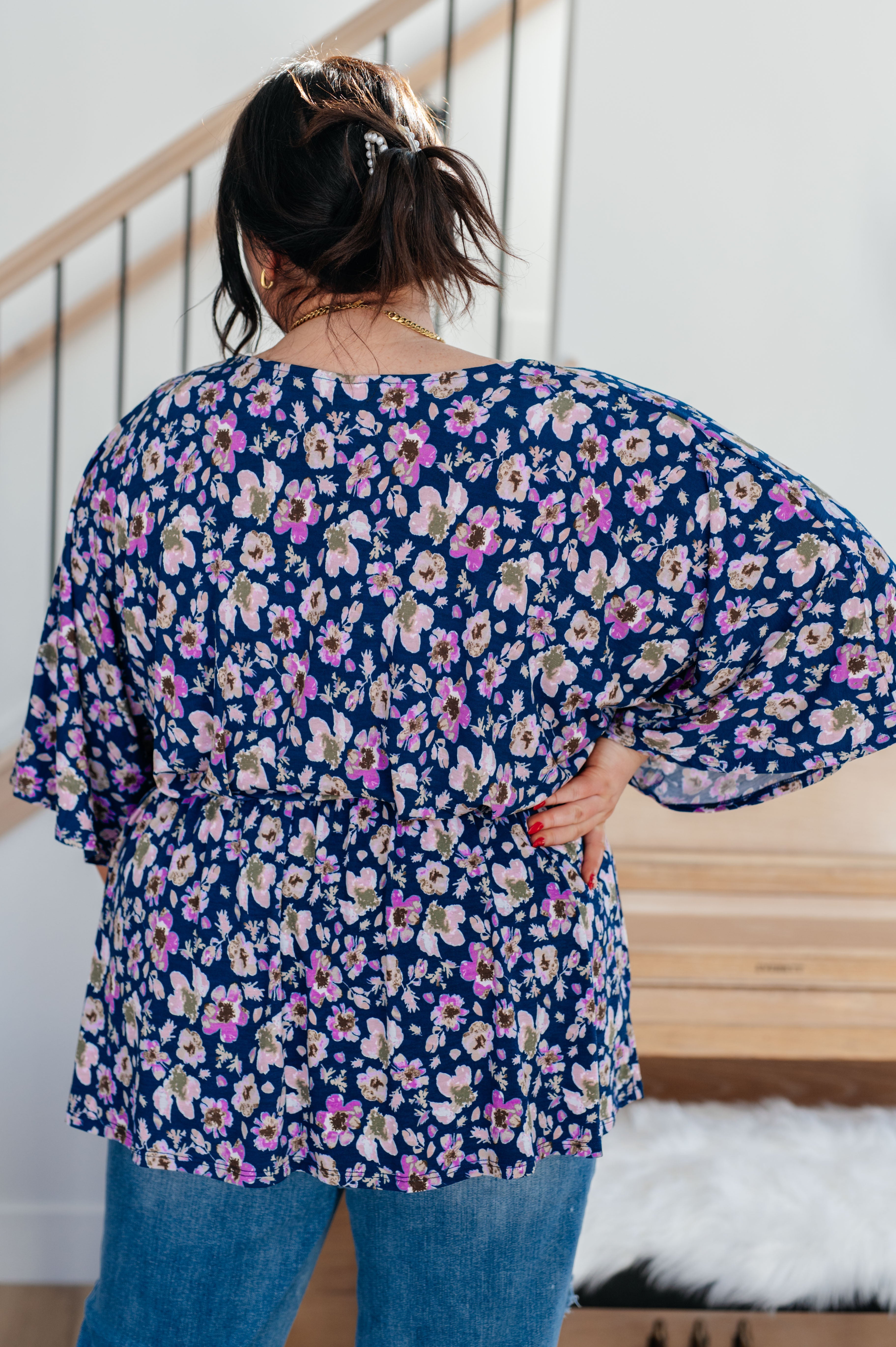 Dearest Dreamer Peplum Top in Navy Floral