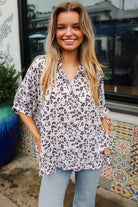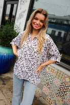 Feeling Bold Ivory Animal Print Dolman Collar Button Down Top