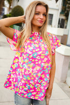 Feeling Femme in Pink Floral Print Frill Mock Neck Blouse