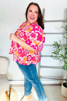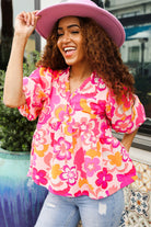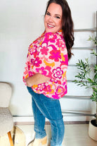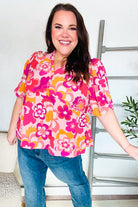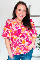 Find Love Pink/Yellow Floral Frill Balloon Short Sleeve Top