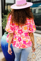 Puff Bubble Balloon Sleeves + Frill V-Neck + Floral print