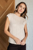 Get in the flow with our Flow With Me Embossed Top. Made from embossed knit fabric and featuring a banded round neckline and sleeve cuffs, this top offers both style and comfort. The muscle tee silhouette adds a touch of edginess to your wardrobe. Don't miss out on this trendy piece!