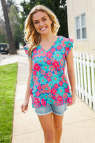 Adorable, lightweight and ready for warmer weather, slip on this flower print flutter sleeve blouse over all your denim bottoms and look adorable wherever you go.