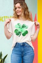 Stay lucky with this cream French terry top that features puff banded sleeves and a four-leaf clover sequin decal. The perfect St Paddy's Day top.