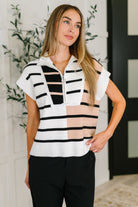 The Lonely Traveler Striped Quarter Zip Vest is your perfect companion for effortless style and comfort. Made from a mid-weight ribbed knit, this vest features a banded high neck with a half zip and sleek silver hardware for a touch of modern flair. The banded sleeve cuffs offer a snug fit, making it an ideal layering piece for cooler days. The striped pattern adds a timeless, versatile touch, while the relaxed design ensures you’ll feel just as good as you look. Whether you're hitting the road or relaxing at home, this vest is the perfect blend of function and fashion.
