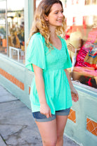 Mint Smocked Woven Flutter Sleeve Top