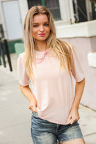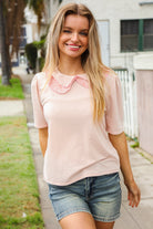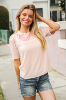 Donning a trendy double flat collar design and floral print, this puff short sleeve top made with cozy French terry is unique and perfect for the new year! Wear with all your denim.