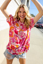 Brighten any room or occasion with this vibrant frill round neck short sleeve blouse donning multicolor big floral print. Tuck in or out for a casual chic look!