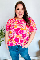 Perfectly You Fuchsia Big Floral Frill Neck Back Button Blouse