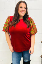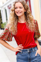Warmest Wishes Red & Green Sequin Puff Sleeve Velvet Top
