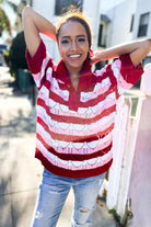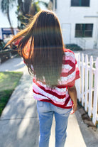This soft loose knit sweater has a stunning heart print and a feminine Pointelle design. With an elevated notched collar neck and ribbed short sleeves, be prepared to look adorable for your Valentine!
