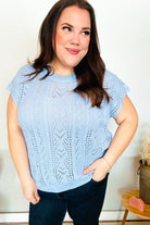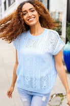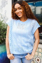The Perfect Find Sky Blue Dolman Short Sleeve Crochet Sweater Top