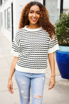 You've Got This Ivory & Black Wavy Stripe Pattern Sweater Top