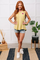 You won't feel so bad in our A Few of My Favorite Things Round Neck Tank, featuring terry cloth fabric, a banded neckline and cuffs, exposed seams, a scooped high-low hem, and an adorable machine embroidered smiley face. Effortlessly chic and comfy, it's perfect for showing off your unique style.