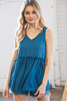 Azure Blue V Neck Sleeveless Ruffle Frill Tunic