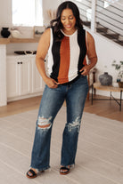 Embrace the playful style of the Decidedly Undecided Knit Striped Tank! This sweater knit tank features vertical stripes in ivory, camel, and black for a unique look. With a scoop neckline and fitted silhouette, this tank adds a fun twist to any outfit.