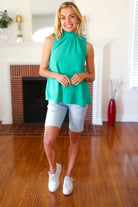Be Your Best Emerald Smocked Neck Woven Sleeveless Top
