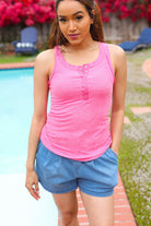 Summer Days Fuchsia Melange Ribbed Henley Button Down Tank