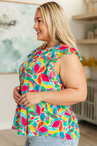 Add some flair to your wardrobe with the Lizzy Flutter Sleeve Top! This playful top features a V-neck, flutter sleeves, and a hi-low scooped hem. Perfect for any occasion, the bright pattern adds a touch of stylish whimsy. Upgrade your style game with Bulgari's latest!