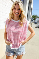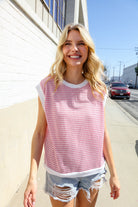 Lock Eyes Pink & Ivory Jacquard Waffle Knit Banded Sleeveless Top