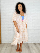 - Tropical Print Gauze Kimono with Elastic Waist Tie in MilkTea