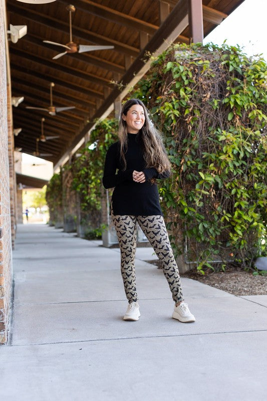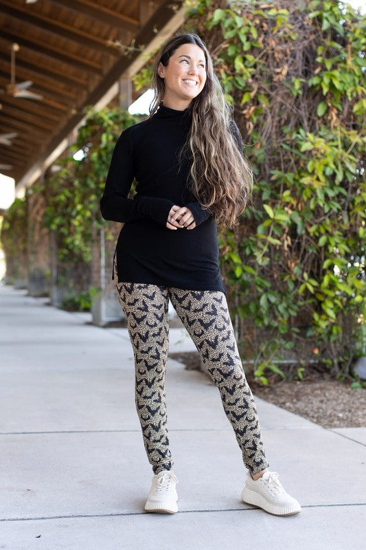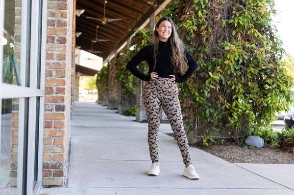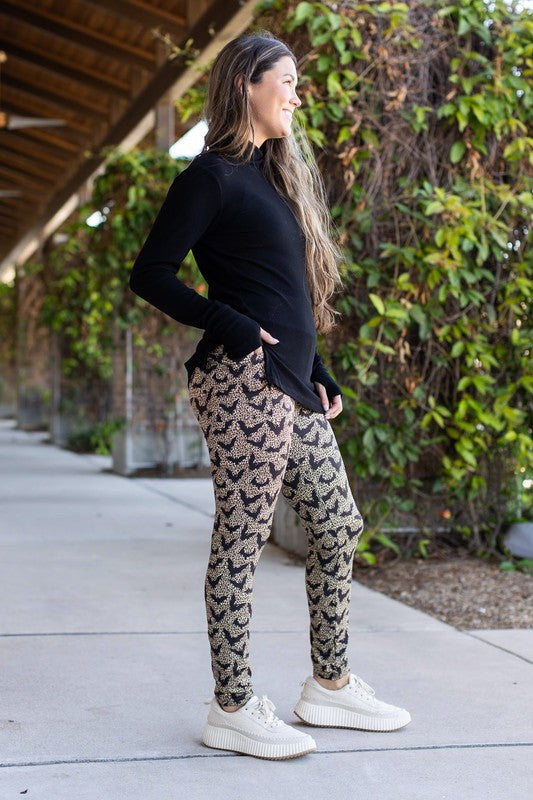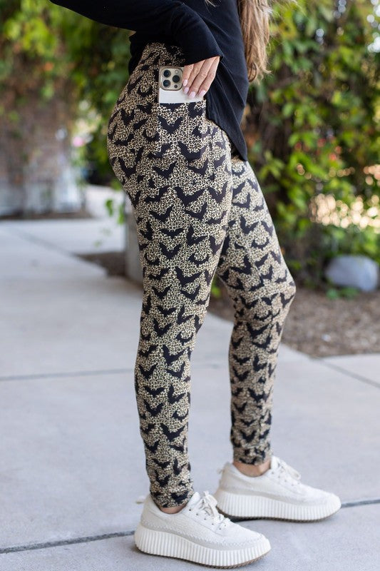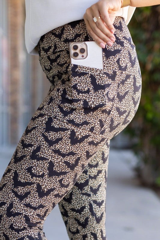 Unleash your wild side this spooky season with our Bianca Leopard Bat Leggings! These aren't your average leggings; they're a fierce and unique blend of two of our favorite things: classic leopard print and spooky bats. The intricate design features bats subtly integrated into the leopard spots, creating a stylish and playful twist that's perfect for Halloween and beyond.