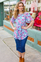 Feeling Femme' Sky Blue Multicolor Floral Tie Back Top