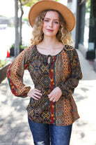 Weekend Ready Black & Rust Paisley Raglan Keyhole Tie Top
