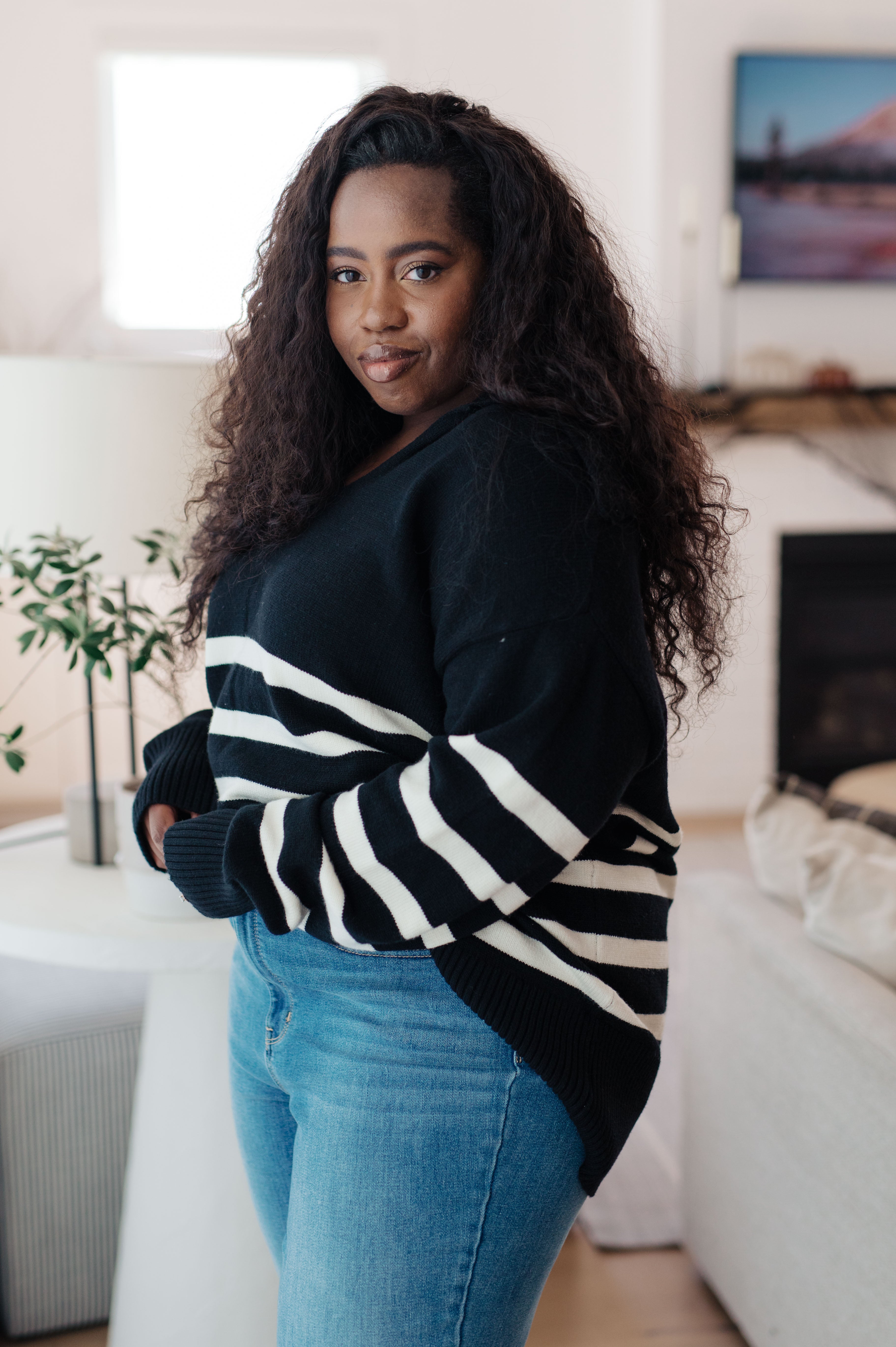 This From Here On Out Striped Sweater adds a bold statement to any wardrobe. It features a soft, sophisticated sweater knit, a collared v-neckline, and balloon sleeves with a relaxed fit. Enjoy the feel of the cozy material and the chicness of the bold stripes.