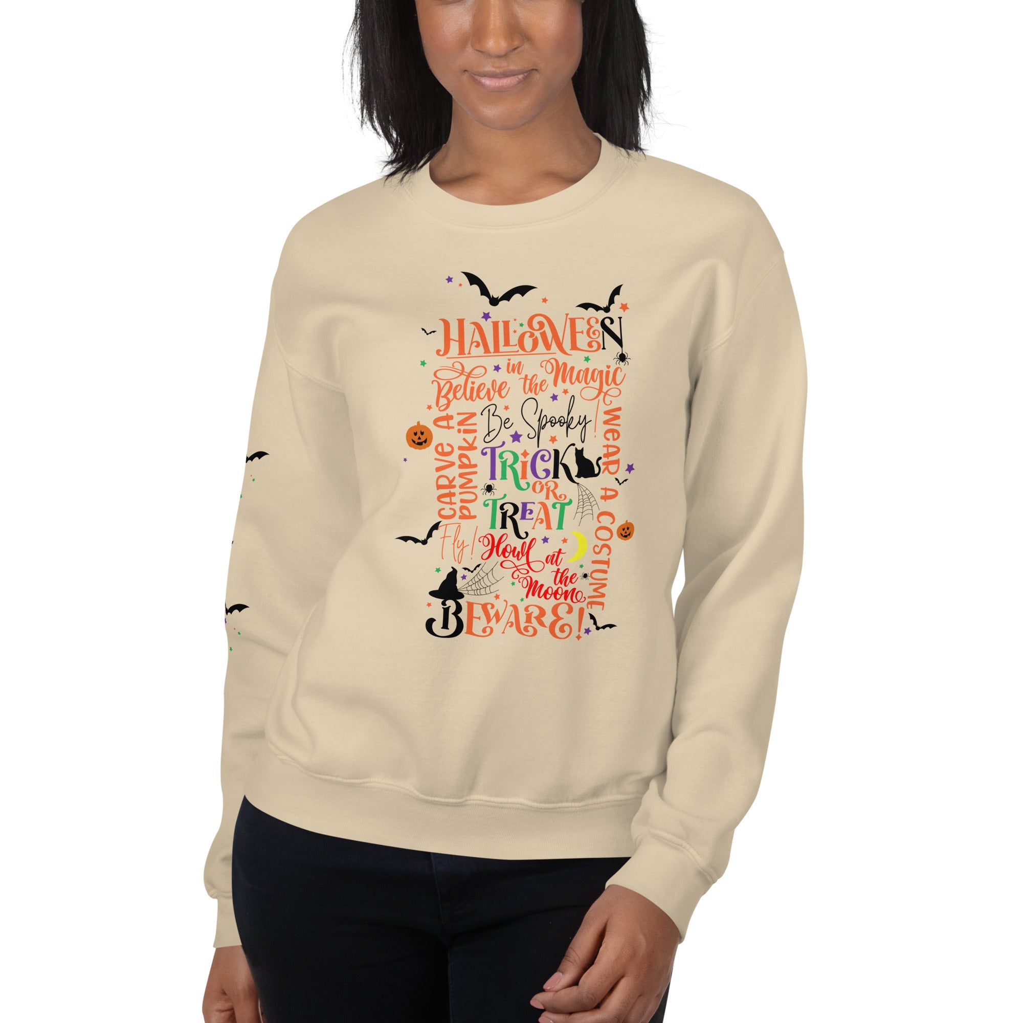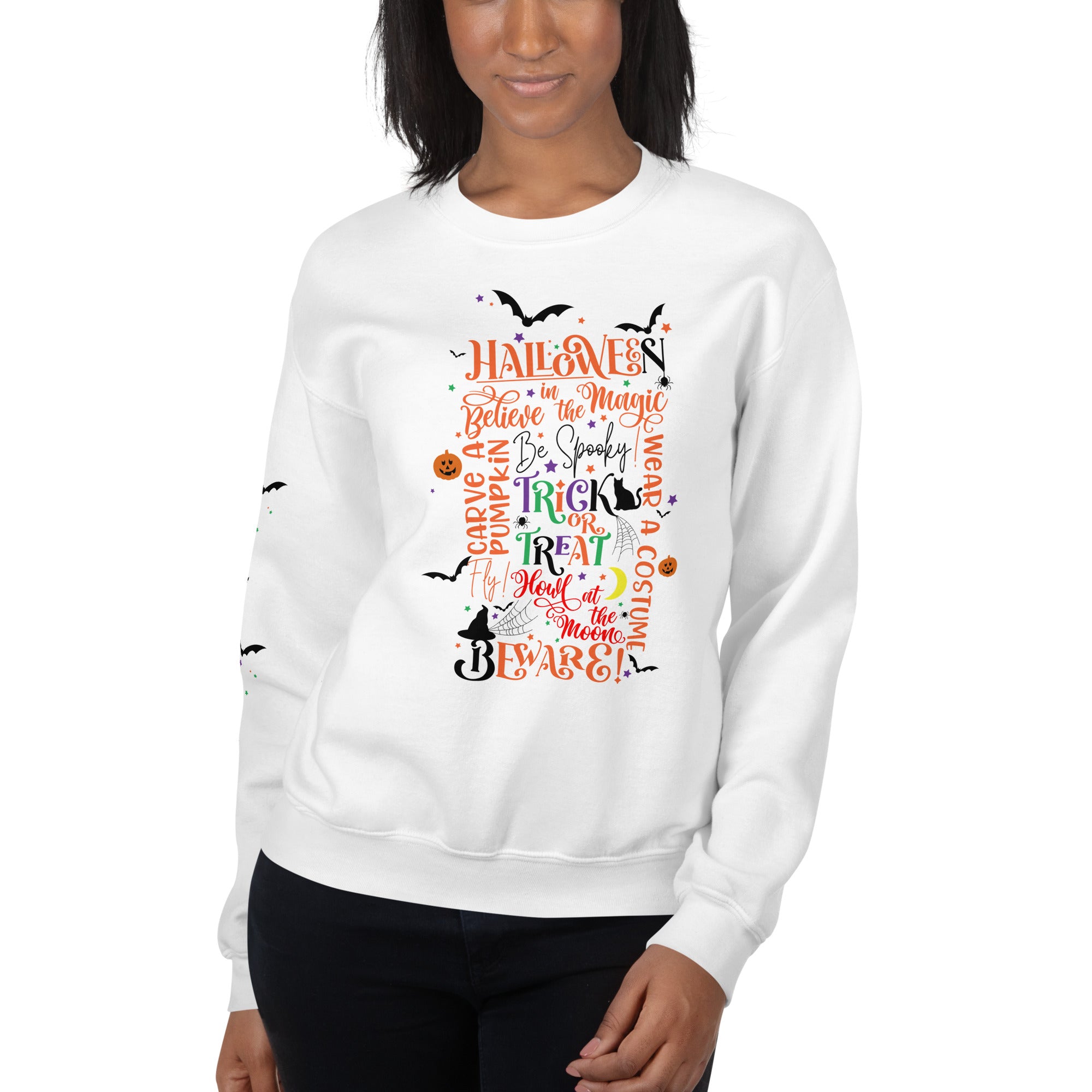 Halloween Unisex Sweatshirt is a sturdy and warm sweatshirt bound to keep you warm in the colder months. A pre-shrunk, classic fit sweater that's made with air-jet spun yarn for a soft feel and reduced pilling.