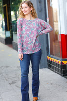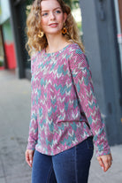 Look stunning in this vintage print textured two tone knit round neck top. Pair with your favorite jeans and booties for a casual yet stunning look.